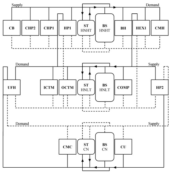 - Prasanna, A.; Dorer, V.; Vetterli, N. Optimisation of a district energy system with a low temperature network. Energy 2017, 137, 632–648. [Google Scholar] [CrossRef]