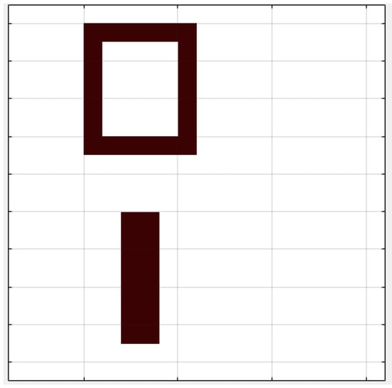 In traditional two-dimensional map gridding and binary modeling, the actual working area of the UAV is equated to a binary matrix, with a sparse matrix used to store the binary information of the entire map, where ‘0’ and ‘1’ represent traversable and non-traversable areas, respectively. As shown in Figure 3, the UAV’s working area is depicted, with obstacles marked as black squares.