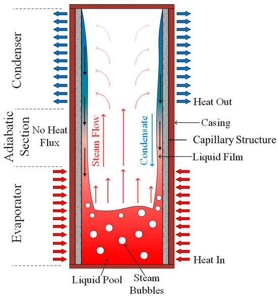 - Zohuri, B. Heat Pipe Design and Technology: Modern Applications for Practical Thermal Management, 2nd ed.; Springer Nature: Cham, Switzerland, 2016. [Google Scholar]