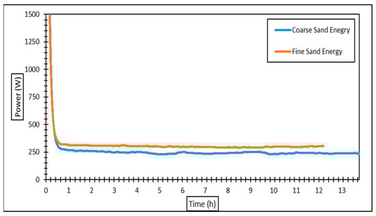 Thermal power supplied to fine and coarse sand while charging at benchmark.