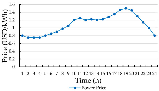 Firstly, we examine the operation of a typical BESS over a 24-h period, with the energy time-of-use (TOU) tariff following a typical intraday fluctuation pattern characterized by peaks and troughs, which is shown in Figure 2. The system’s initial SOC is set at 50%, with a rated charging/discharging power of 30 kW and a battery capacity of 60 kWh. Leveraging the reinforcement learning algorithm, the BESS autonomously learns and optimizes its charging and discharging strategy, adapting to real-time market conditions and maximizing operational efficiency throughout the day.