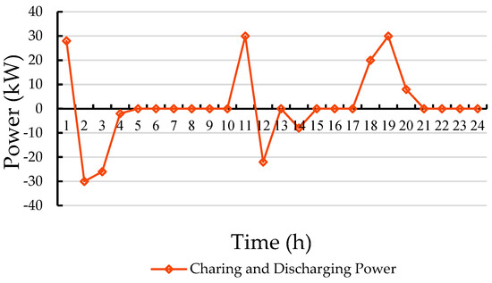 During the early training phase, the system explores various combinations of charging and discharging actions to identify the optimal strategy. After multiple iterations, the algorithm converges on a policy of charging during periods of low electricity prices and discharging during peak price periods. Figure 3 shows the charging and discharging power of the BESS. Specifically, during low-price intervals, such as nighttime, the system prioritizes maximizing its charge capacity. Conversely, during high-price periods, typically around midday and afternoon, the system discharges as much stored energy as possible to maximize revenue. This learned strategy aligns with the economic objectives of the BESS, optimizing both energy arbitrage and system performance.