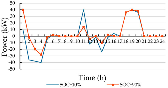 As is illustrated in Figure 7, for the BESS with a higher initial SOC, the system tends to prioritize discharging during peak price periods to maximize revenue. In contrast, the BESS with a lower SOC focuses on charging during off-peak periods to ensure sufficient energy is available for discharging during peak price periods. This strategic difference highlights how initial battery conditions directly affect operational decisions and economic outcomes.