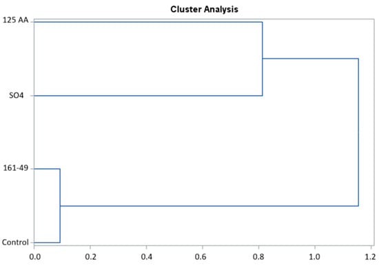 Figure 1 illustrates the rootstocks 125 AA and SO4, which constitute the first cluster. Their proximity on the dendrogram suggests that they have similar yields per hectare. Such similarity is advantageous as it promotes uniformity in yields and facilitates harvest management. The second cluster includes rootstocks 161-49 and Control. These rootstocks exhibit greater variability in yield per hectare compared to the first cluster. The higher yield of these rootstocks may be more beneficial for wine production, where the specific characteristics of the rootstocks impact the quality and profile of the wine. The classification of rootstocks into two main clusters provides insights into the potential utilization of different rootstocks based on specific production and quality requirements. Research by Klimek et al. [46] demonstrated significant differences in yield size between rootstocks 125AA and SO4, as well as notable differences between vines grafted onto 161-49 and self-rooted vines. However, in studies conducted in 2015, no significant differences were observed between self-rooted vines and those grafted onto SO4 rootstock.