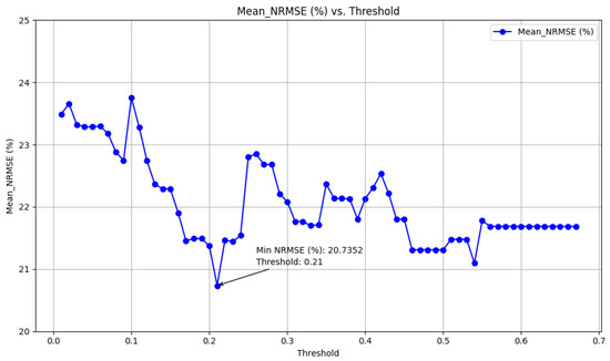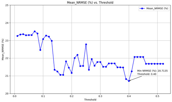 In Figure 9, NRMSE changes for weekly forecasts are presented, which shows that the range of changes by applying Spearman’s method is between 0.94 and 9.13%, while it was between 1.82% and 11.37% without applying this method.