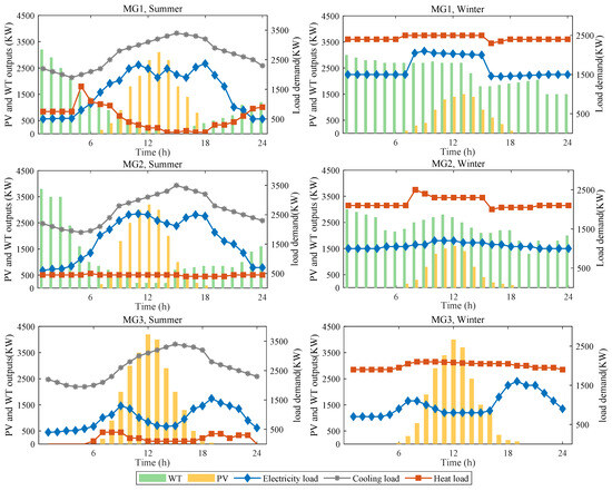 - Zhao, J.; Wang, W.; Guo, C. Hierarchical optimal configuration of multi-energy microgrids system considering energy management in electricity market environment. Int. J. Electr. Power Energy Syst. 2023, 144, 108572. [Google Scholar] [CrossRef]