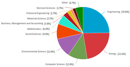 The subject areas of the documents illustrated on Figure 5 indicate the interdisciplinary nature of EV adoption and infrastructure research. The largest proportion of documents falls within Engineering (58 documents, 24.8%), followed by Energy (53 documents, 22.6%), Computer Science (28 documents, 12%), Environmental Science (28 documents, 12%), and Social Sciences (22 documents, 9.4%). This distribution highlights that the challenges and opportunities associated with EV infrastructure span multiple fields, requiring a multidisciplinary approach to address them comprehensively. The significant representation of engineering and energy studies underscores the technical and practical aspects of EV infrastructure, while the inclusion of social sciences points to the importance of policy, societal acceptance, and behavioral factors.