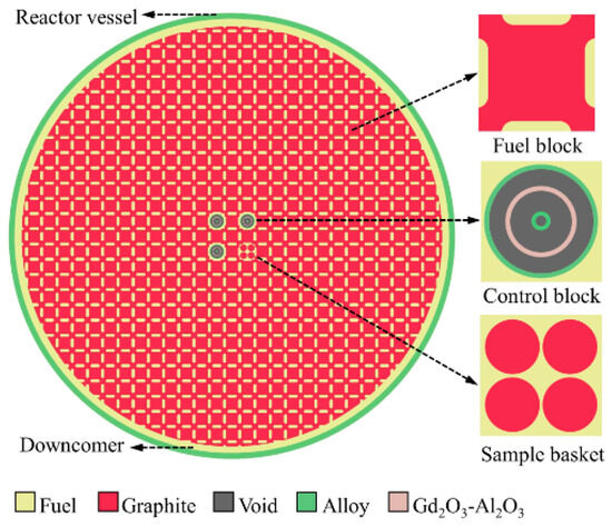 - Wang, Y.; Ma, Y.; Jiang, N.; Zhu, G.; Guo, W.; Li, J.; Wu, W. Preliminary Analysis of the Irradiation Deformation of a Typical Molten Salt Reactor Graphite Component. Prog. Nucl. Energy 2024, 168, 105009. [Google Scholar] [CrossRef]
