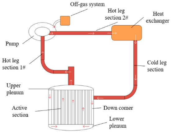 - Salt stripping process: rare gas left from the molten salt, denoted as:where, and stand for the concentration of noble gas in the molten salt via stripping, and indicates the salt stripping efficiency.