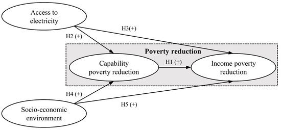 Considering all the hypotheses proposed above, the conceptual model for the roles of access to electricity and socio-economic environment in capability poverty reduction and income poverty reduction is shown in Figure 1. The first part of this research aims to evaluate this model and explore the mechanism of poverty reduction.