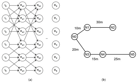 In a PANN connections within the ANN correspond to physical connections from the electrical network. (a) Pruned ANN architecture. (b) Example of an electrical network with six nodes and five connecting lines.