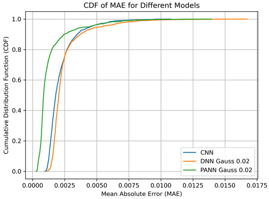 Table 3 compares the final trained MSE loss of the tested networks. When the PANN is trained for more epochs, it significantly improves its accuracy, while the compared DNN only marginally improves. Generally, the compared CNN exhibits a higher validation loss within the conducted training. The MSE for 1400 and 3000 epochs is still higher than for the loss of the compared architectures.