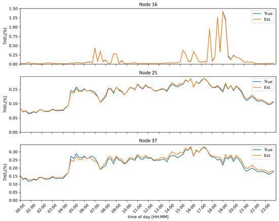 Assuming that a high penetration of distributed generation and electric vehicle charging in low- (LV) or medium-voltage (MV) grids influences PQ significantly, research and simulations have been conducted to quantify this impact. The authors in [6] prove a strong contribution of large photovoltaic (PV) systems to harmonic distortion in Columbian distribution grids. Other sources discuss how smaller systems affect PQ. Using a simulation model, ref. [7] shows that PV systems connected to LV grids may cause considerable transient effects, voltage sags, and harmonics. Reference [8] analyzes the influence of electric vehicle charging in LV grids on technical equipment such as transformers. The authors propose to limit the current total harmonic distortion (THD) to 25–30% to preserve a reasonable life expectancy, as harmonic currents cause premature aging of components. Yet, another work observes current THD of up to for the powerful, commercially available electric vehicle supply equipment (EVSE) of older generations [9]. Considering these influences on grid operation, distribution grid operators have an incentive to assess the level of harmonics and to identify the origins of PQ disturbances in LV and MV grids. Especially for live monitoring systems or WAMSs, this paper presents a high-performance estimation method suitable for application in near-real-time environments. Typically, this term is defined based on the specific application and refers to the system’s processing time from the initiation of an event to the completion of transmission and evaluation [10]. In harmonic analysis, the shortest evaluation interval commonly used determines the performance requirements for SE. For example, the IEEE519 standard requires evaluation of voltage harmonics with an average interval of 3 s [11].