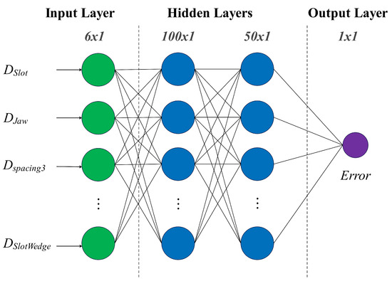- Multi-Layer Perceptron Model Training: For more complex parameter interactions, an MLP is employed. The MLP is trained using back-propagation and the Adam optimizer, with multiple hidden layers to capture intricate relationships between slot shape and resolver accuracy. Neural networks are particularly effective in cases wherein the data exhibits high-dimensional, non-linear dependencies, making them a powerful tool for refining stator slot designs.