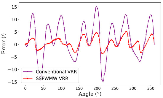- Ge, X.; Zhu, Z.Q. A Novel Design of Rotor Contour for Variable Reluctance Resolver by Injecting Auxiliary Air-Gap Permeance Harmonics. IEEE Trans. Energy Convers. 2016, 31, 345–353. [Google Scholar] [CrossRef]