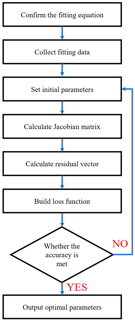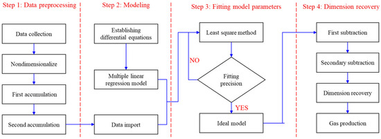 The derived parameters a and B, along with the flowchart detailing the least squares fitting process, are depicted in Figure 2. The dimensionless data, following the second accumulation, were fed into Equation (6) for comprehensive multiple linear regression analysis. Employing the least squares method, we calculated the sum of squared residuals between the actual observed values and those predicted by the model. This approach was instrumental in determining the optimal parameter values, thereby enhancing the model’s predictive accuracy and reliability.
