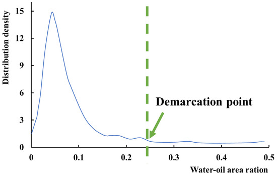 Density distribution curve of the remaining oil–water–oil area ratio.