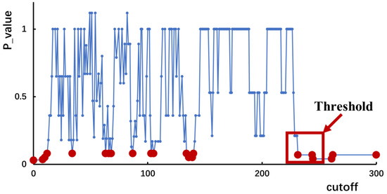 In this study, the Kernel Density method was adopted to determine the critical value of remaining oil morphology. Apart from the demarcation point, two data sets were provided for the study. The probability significance of the two data sets was evaluated by determining their demarcation point such as the mechanical and statistical characteristics of microscopic remaining oil (see the green dashed line in Figure 8). In Figure 9, the comparative analysis of the significance difference indicates that the correlation between the left and right data sets is weak. This is because the left and right data sets no longer change and are at low values. The side with most samples represents the main morphological characteristics and force mode of the core micro-remaining oil. This method is used to establish the boundaries of “water-oil interface connectivity”, “water-oil area ratio” and “Oil-body surface area” after the 0.5 PV displacement. These are used in classifying the micro-remaining oil types.