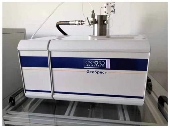 The Oxford-MARAN DRX 2 Nuclear Magnetic Resonance (NMR) instrument, Oxford, UK (Figure 2), produced in the UK, is used to measure NMR parameters such as the longitudinal and transverse relaxation times of rocks under a constant magnetic field. The instrument’s key performance specifications are as follows: (1) resonance frequency of 2 MHz; (2) magnetic field strength of 470 Gauss; (3) magnetic field homogeneity of 100 ppm; (4) minimum echo spacing of 75 µs/200 µs; and (5) a maximum echo count of 100,000.