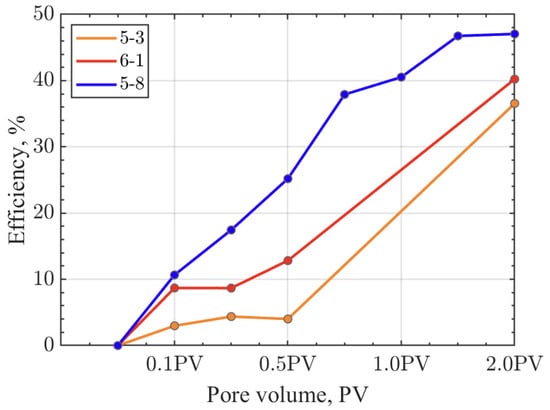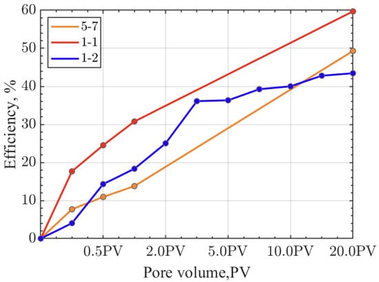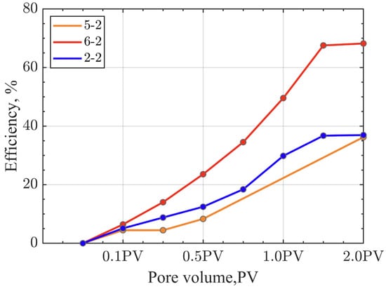 Displacement efficiency of different rock samples during displacement under variable injection pressure conditions.
