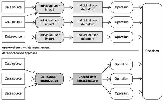 Energy data management: individual import and store vs. shared data infrastructures.