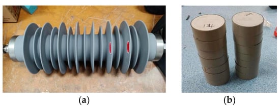 Testing objects. (a) YH10WT−42/105 locomotive arrester; (b) ZnO discs of the arrester.