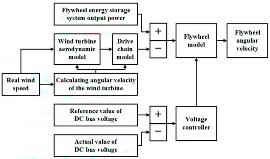 The master and slave controllers in the upper and lower levels had better performance in sending or switching orders to operate the cooperated FES matrix system with the wind power system [154]. The synthesized DC-link voltage and power auxiliary control of the FES system to non-grid-connected wind power ensured steady output power to the whole system when some faults happened in the DC-link [155]. Checking the grid power difference and making it as the reference of the power of FESU for PMSG system smooth output, the small signal model of double loops of power and circuit control system was built up to maintain the stable operation of the power system under the small disturbance conditions [156] (see Figure 8). A neural-adaptive proportional integration derivative (PID) control strategy using the Lyapunov stability theory was developed to control each flywheel cooperated and stable operation [157]. For grid frequency regulation application, a fuzzy proportional derivative controller of the FES unit was designed for a 2 MW wind power generation system with a 400 kW FES unit [158].