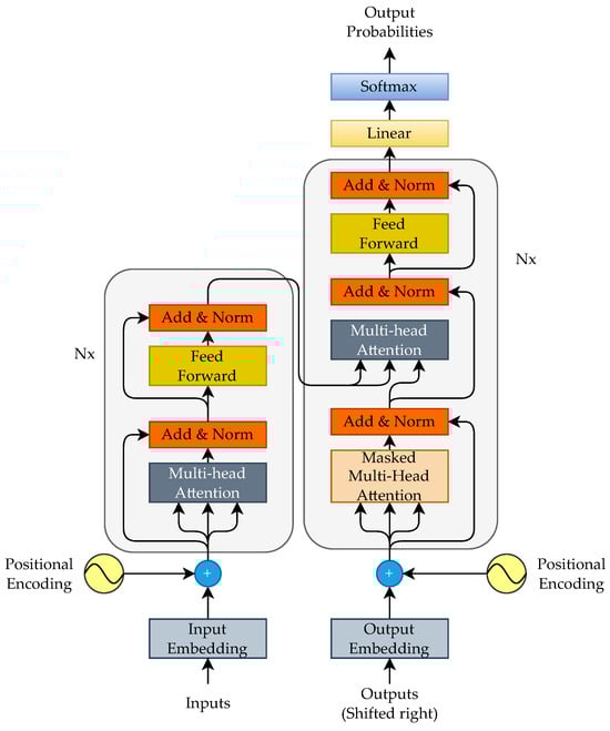 - Vaswani, A.; Shazeer, N.; Parmar, N.; Uszkoreit, J.; Jones, L.; Gomez, A.N.; Kaiser, Ł.; Polosukhin, I. Attention is all you need. Adv. Neural Inf. Process. Syst. 2017, 30. [Google Scholar] [CrossRef]