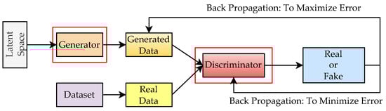 - Goodfellow, I.; Pouget-Abadie, J.; Mirza, M.; Xu, B.; Warde-Farley, D.; Ozair, S.; Courville, A.; Bengio, Y. Generative adversarial nets. Adv. Neural Inf. Process. Syst. 2014, 27. [Google Scholar] [CrossRef]