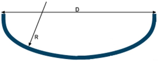 As for the dished head cap ends, they were assumed to be of the Korbbogen type, Figure 5, suitable for medium/high pressures, namely 3 bar, which is the common maximum pressure for liquid hydrogen storage. For this type of cap end, the inner spherical radius varies between 0.8 and 0.9 of the inner diameter of the tank; in this study, the value 0.9 was chosen.