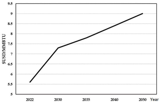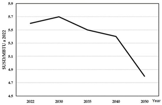 Figure 8 shows the expected behavior of production prices taking the gas from the Cusiana field in Colombia as a reference, which estimates a downward trend considering the gas production prospects by the company that owns the Magdalena Medio refinery [].