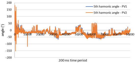 Angles of harmonic shifts of 5th harmonics of two PV power plants located in close proximity.