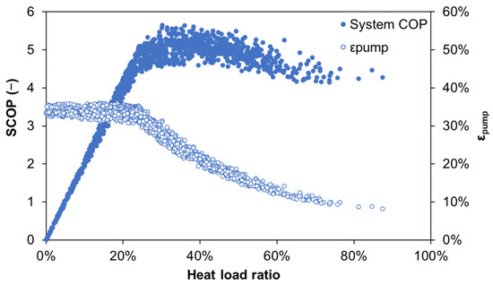 Relation between daily average heat load ratios and εpump.