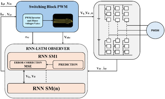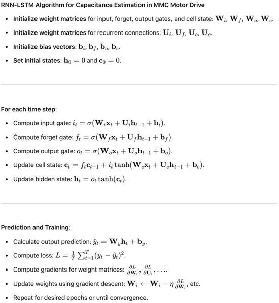 RNN–LSTM algorithm for capacitance estimation in an MMC motor drive.