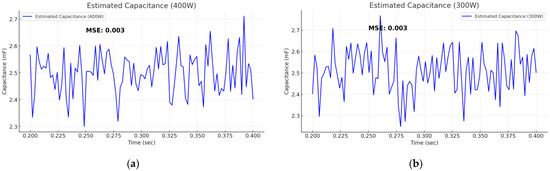 The simulation results at 400 W and 300 W power levels: (a) estimated capacitance at 400 W; (b) estimated capacitance at 300 W.