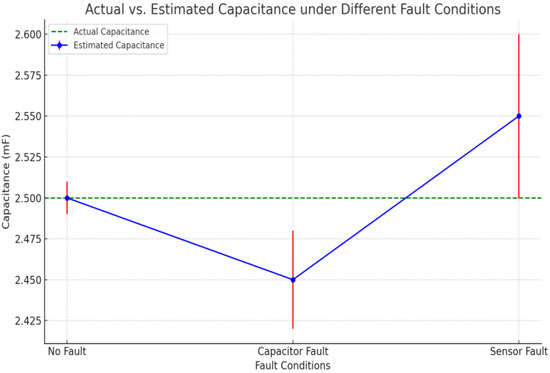 The robustness of the proposed method was also tested under different fault conditions [23], including capacitor faults and sensor faults. Figure 10 illustrates the actual versus estimated capacitance values under these fault conditions.