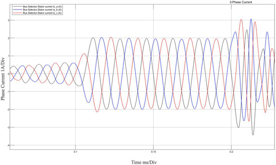 The graph below in Figure 12 shows the three-phase current waveform obtained from the simulation of the current control block within the PMSM drive. It demonstrates the effectiveness of the control strategy in maintaining balanced and sinusoidal currents under varying load conditions. This visualization is crucial as it verifies the stability and accuracy of the current control mechanism in the MMC–PMSM system, ensuring reliable performance during real-time operation.