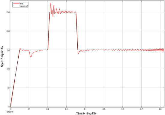 The speed reference graph in Figure 13 displays the reference speed for the PMSM drive. It serves as a benchmark for evaluating the system’s speed control accuracy. The alignment of the actual speed with the reference speed demonstrates the capability of the control system to track speed commands precisely. This ensures that the MMC–PMSM drive system can meet the dynamic requirements of various applications, further validating the robustness and reliability of the proposed LSTM-based capacitance estimation method.
