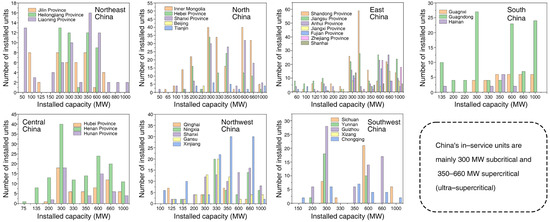 Technical parameters and regional distribution of existing coal-fired units in China (2022) [31,32,33,34].