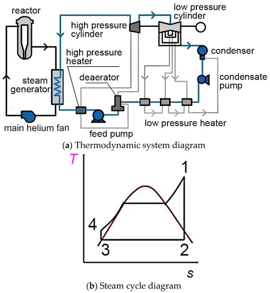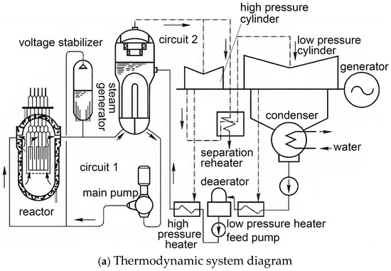 There are about 440 nuclear power units in operation worldwide, of which about 70% are pressurized water reactors (PWR) [39], and the vast majority of nuclear power plants in operation in China are PWR types. High-temperature gas-cooled reactor (HTGR) is the latest generation of nuclear reactors. Two typical thermal systems of nuclear power plants are investigated in this article.