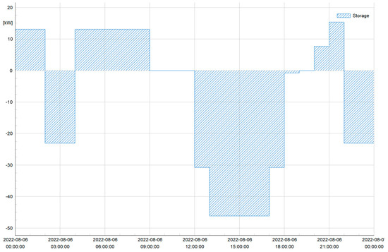In the third scenario, the proposed optimization procedure from Section 2 is performed with an additional constraint related to the SoC of the vehicle battery at the end of the cycle. In this scenario, the EV’s batteries were charged at night when the household consumption is low. The SoC of the batteries has been kept above the set limit of 30%, and the charging pattern is shown in Figure 13.