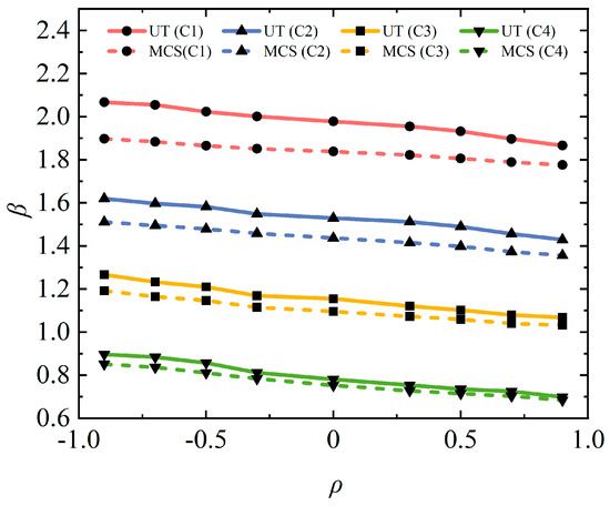 - The results of the example indicate that the error of the calculations of the UT and MCS is within 6% when the reliability index is below 1.3. Engineering is more focused on transmission towers and loading cases with lower reliability. Consequently, the analysis method presented in this paper is a reasonable approach.