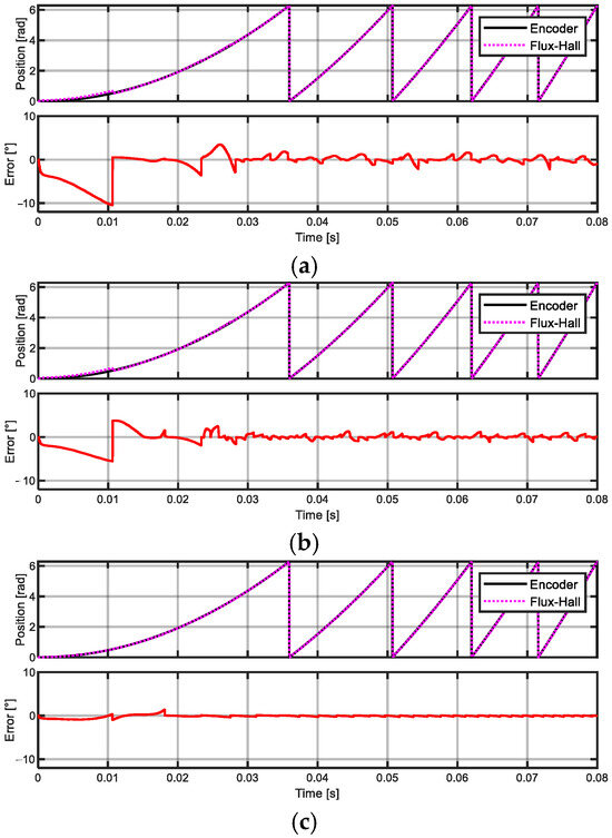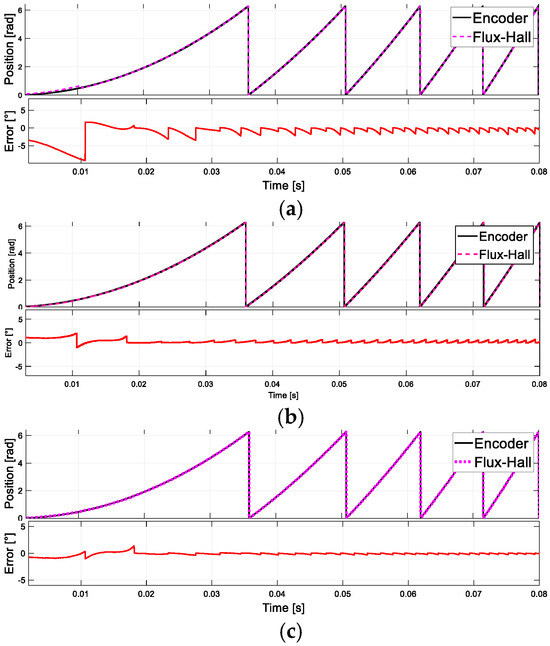 Rotor position under different inductance (a) , (b) , (c) .