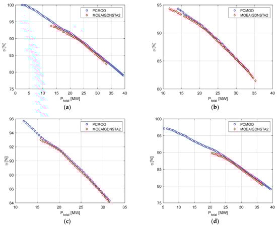 Moreover, while the Capacity Factor () is not a direct objective in the optimization process, it is nonetheless reported for all cases. This metric is crucial for assessing the energy production efficiency of a WF at a specific site. As per the findings in [38], the for a WF varies between 20% and 50%, offering insights into the operational efficiency of WFs.