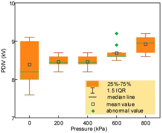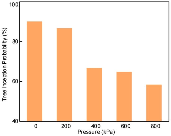 - With mechanism pressure increasing from 0 to 800 kPa, the tree inception probability decreases from 90% to 60%, and the average PDIV increases from 8.5 to 9 kV. This provides evidence for the inhibition effect of pressure on tree inception.
