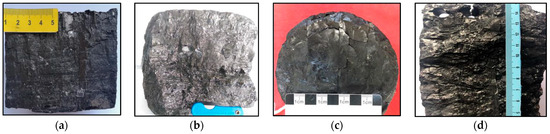 Four coal samples: (a) Coal 1; (b) Coal 2; (c) Coal 3; and (d) Coal 4.