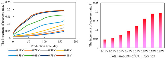 The degree of improvement in methane recovery rate under different total amounts of CO2 injection.