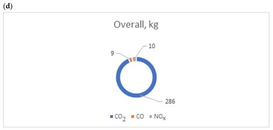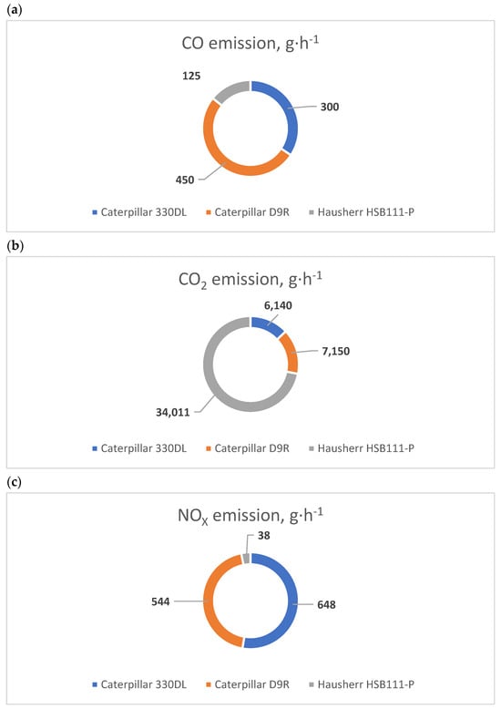 The analyzed machines were equipped with diesel engines meeting the Tier 3/Stage IIIA/B emission standard. Fume (NOx and COx) emissions were determined based on Equation (4), used for the Tier 3 methodology [40]: