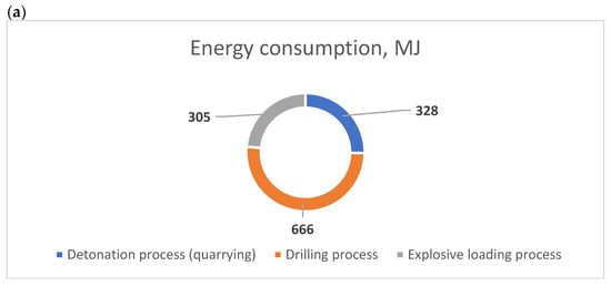 Comparative studies on mechanical mining versus blasting works have mainly been carried out for underground hard-rock mining. Stewart et al. compared the progress of excavation by TBM and blasting and highlighted the relevance of hybrid methods that combine both excavation technologies based on tunneling [32]. A similar comparison was made by Wennmohs [33] and Feijóo [34]. Skawina et al. compared the tunnel progress of mechanical excavation by a modular mobile mining machine and blasting based on discrete event simulation [35]. An LCA analysis and comparison of the two quarrying methods for quarries was carried out by Bascompta et al. and identified the critical factors in the emissions caused by blasting and mechanical excavation [36]. However, no studies have been carried out comparing the energy consumption of drilling and blasting and mechanical mining in quarry rock extraction operations.