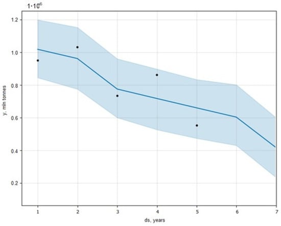 The FBProphet algorithm offers a robust and accessible approach for the predictive analysis of diverse trends. This algorithm has never been used before in the mining industry. The accuracy of the model is largely dependent on the dataset size, with larger datasets typically enhancing model precision. Additionally, the algorithm is particularly well-suited for time series modeling involving multiple seasonal patterns, making it a valuable tool for predicting general extraction volumes and other industry-relevant metrics. As the analysis showed, apart from the need for the mechanical excavation of hard rock, the impact of the detonation of explosives in the form of a blast wave, and the scattering range of rock fragments, the only factor that can be considered is cost. The authors plan to add an economic aspect to the case study discussed here in a future analysis.